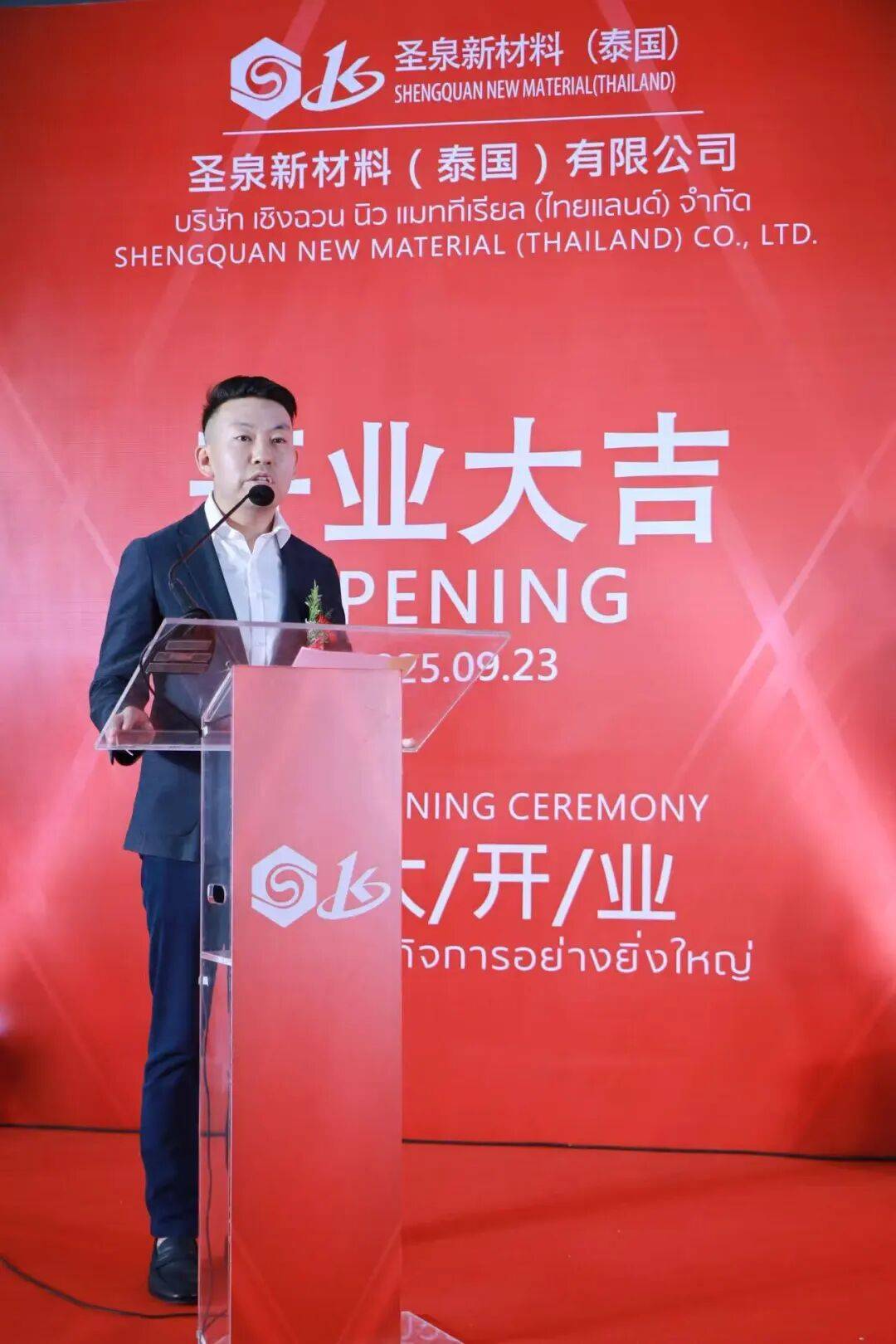 泰中罗勇工业园总裁赵斌在致辞中对圣泉的开业表示衷心的祝贺,同时也对圣泉选址园区表示感谢,也祝圣泉及所有企业宏图大展、业绩长虹!赵总表示,在如今全球风云变幻、国际环境日趋复杂的背景下,圣泉果断选择走出国门,通过在海外设立基地更好的应对国际形势、拓展国际市场、开展国际合作,更好的满足全球客户的需求,相信此举将成为其公司国际化战略发展的重要里程碑。泰中罗勇工业园已经走过20年的发展历程,助力近300家企业到泰投资发展,带动中国对泰投资超50亿美元,园区为本地创造就业岗位5万余个。目前我们所在的园区二区已有40余家企业入驻,大多数企业都在进行紧锣密鼓的建设中,未来我们会持续做好对包括圣泉在内的中国制造业出海的综合生态服务,助力企业安全落地、健康可持续发展。园区感谢当地政府及IEAT、BOI等各机构一直以来对园区及中企在泰发展给予的支持与帮助,园区会与企业共同履行社会责任,与本地社会及民众和谐共处、共同发展,为本地区及泰国的经济与民生发展贡献力量。